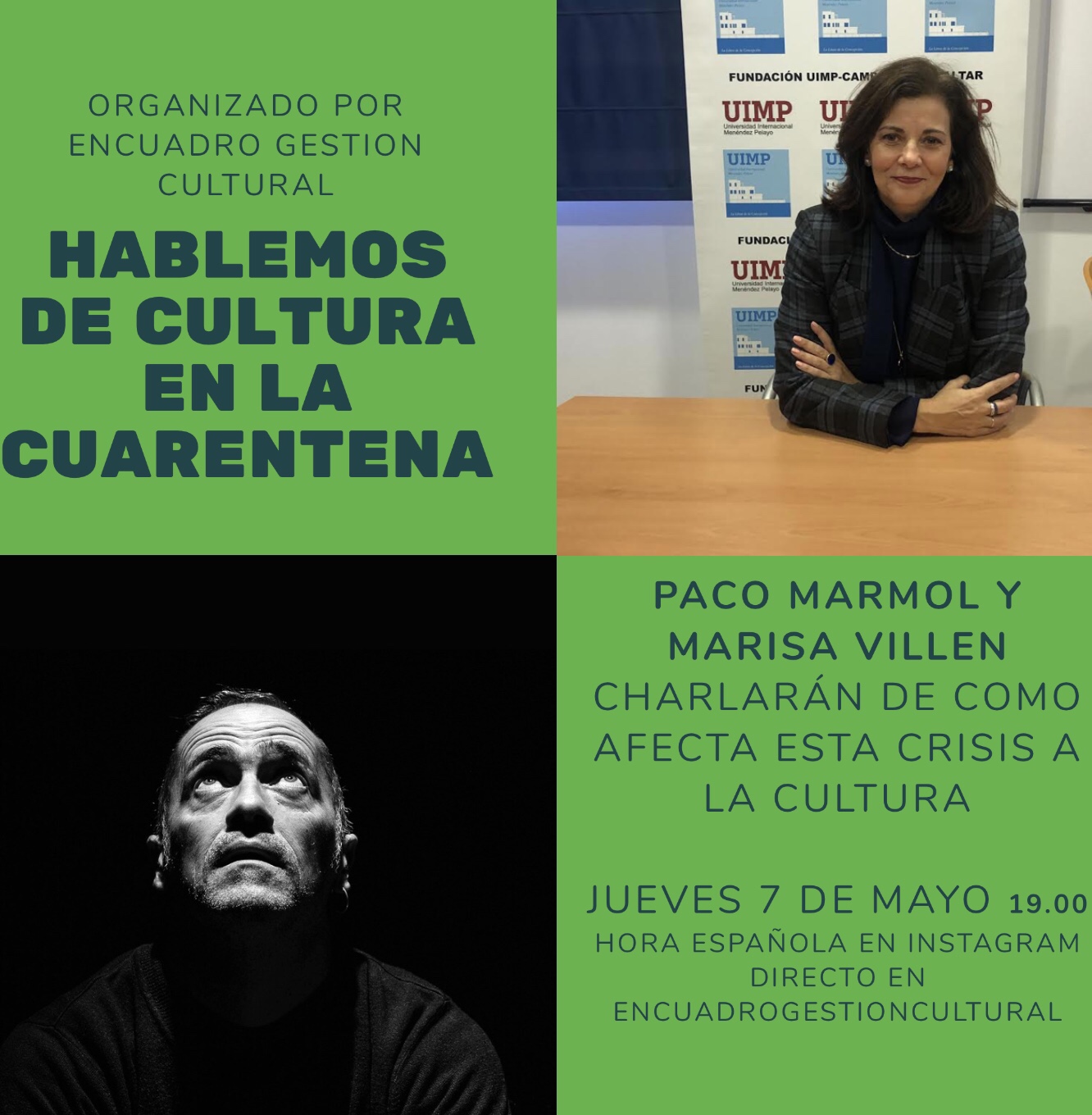 Desde la cuenta de Encuadro en Instagram (encuadrogestioncultural) hemos programado varías charlas con profesionales de la cultura con objeto de poner en común reflexiones.